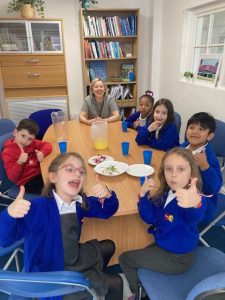 Here we are at our TT Rockstars and Numbots Tea Party, held each Friday with Mrs Clarke our headteacher, to celebrate the children for their work on Maths.  Well done to all the children who have attended so far.  We look forward to seeing different faces this week!