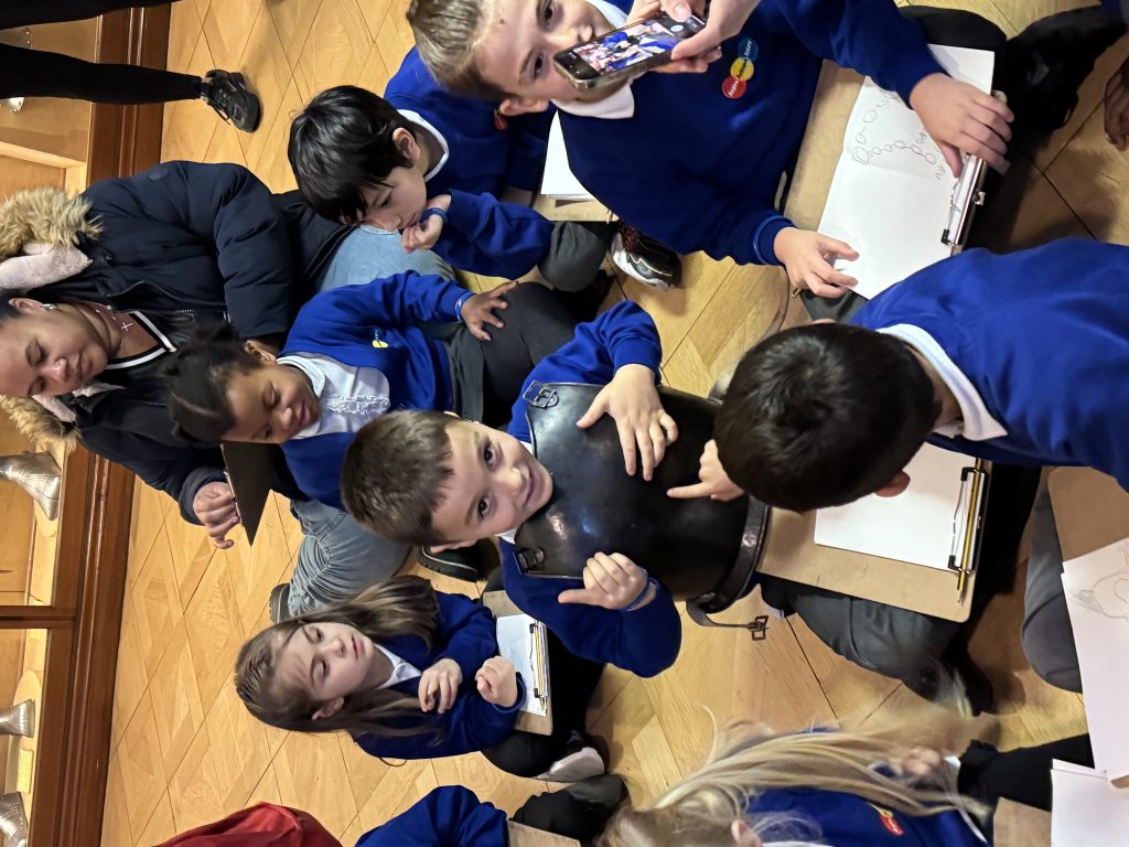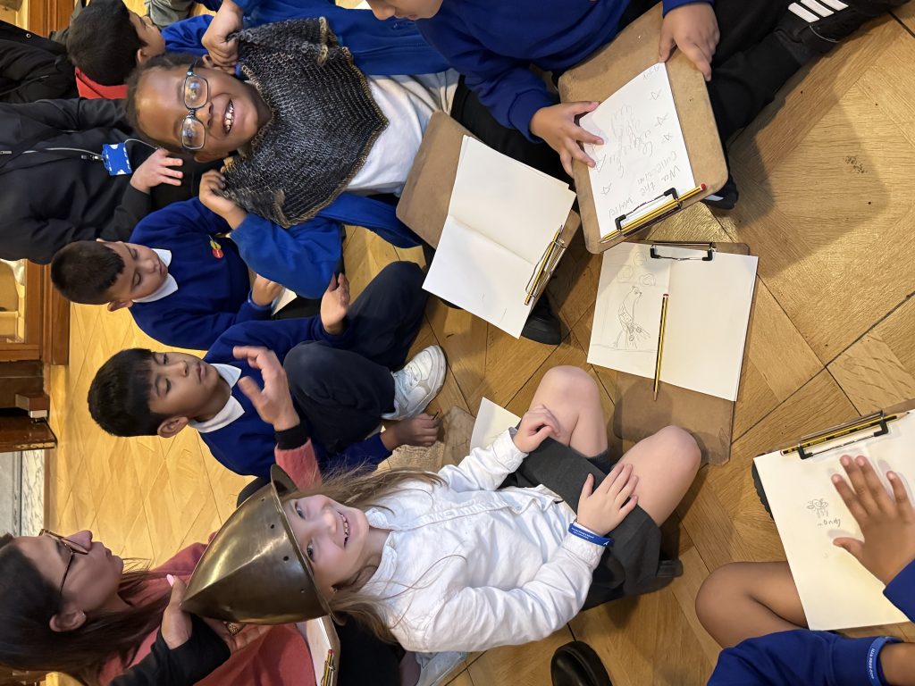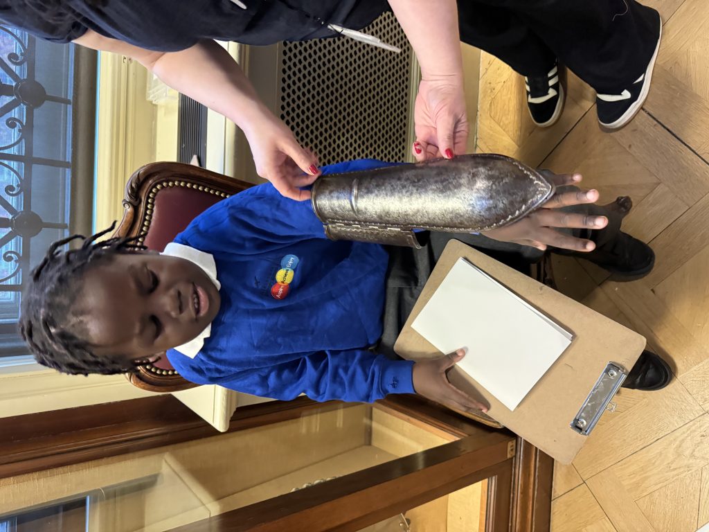 Inside, we explored stunning paintings and even tried our hand at sketching some of our favourites in our mini art booklets. Many of the artworks were portraits, which linked perfectly to our recent learning in art. One of the most exciting parts of the visit was discovering the incredible armour displays — they were fascinating to see up close! We were also fortunate enough to try some on!