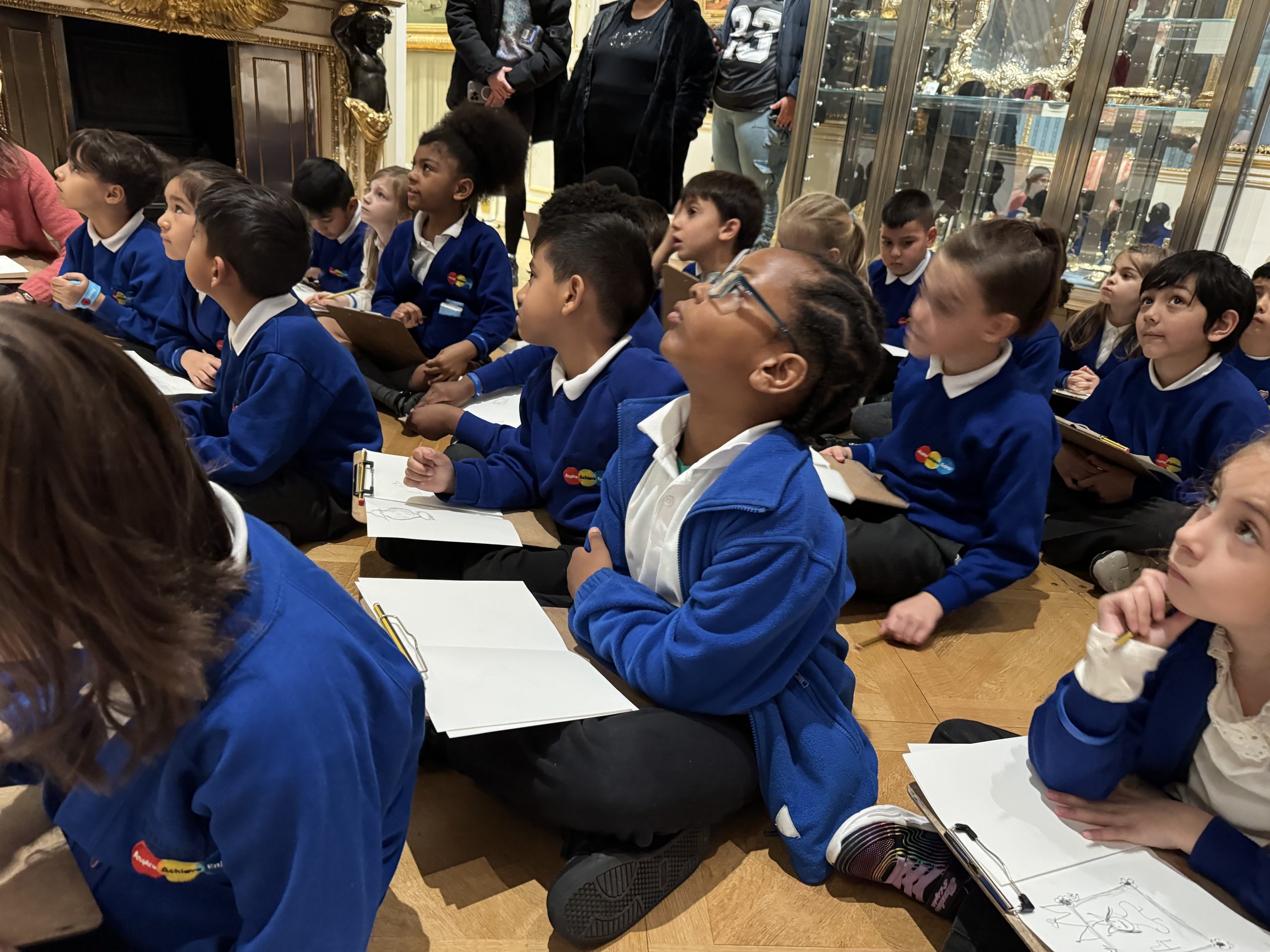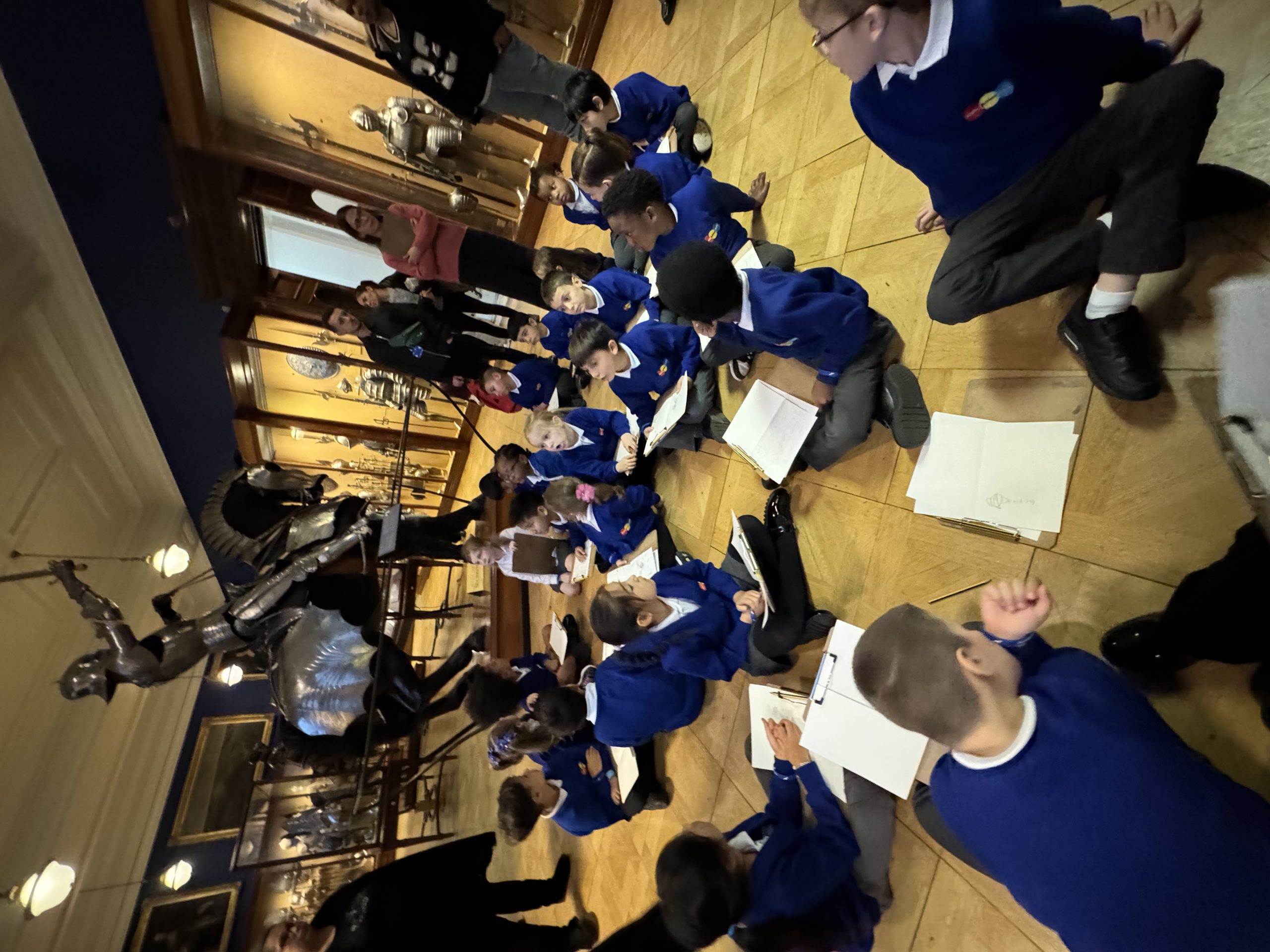 Inside, we explored stunning paintings and even tried our hand at sketching some of our favourites in our mini art booklets. Many of the artworks were portraits, which linked perfectly to our recent learning in art. One of the most exciting parts of the visit was discovering the incredible armour displays — they were fascinating to see up close! We were also fortunate enough to try some on!