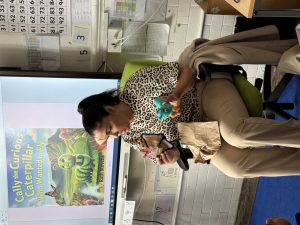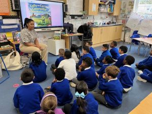Ruth Stevens, Ms Kennedy’s local friend, visited Year 2 this week to read her debut children’s book, ‘Cally the Curious Caterpillar Who Wanted to Fly’. The children were excited to meet Ms Stevens and listened attentively as she read her story to them. They gasped in wonder at the crocheted caterpillar and butterfly which Ruth brought out of her goody bag and then discussed the message of the book – ANYTHING IS POSSIBLE. At the end of the reading, the children were given the opportunity to ask their own curious questions and they even gave her ideas for her next book. Ruth told us that it will be about the importance of friendship. We can’t wait to read it!